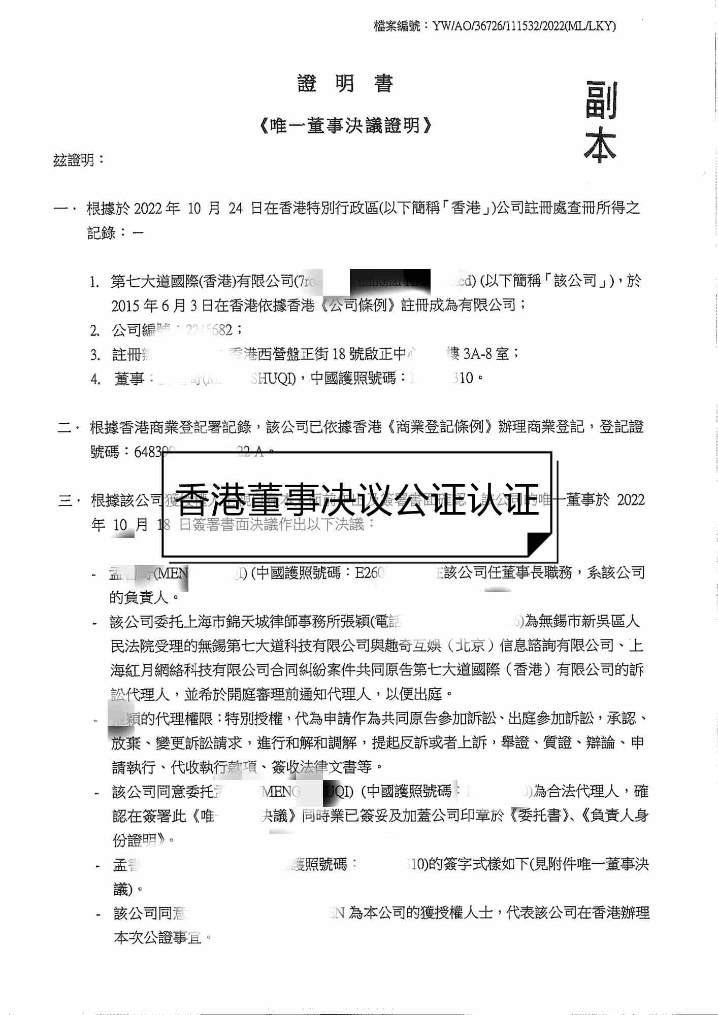 2.委托香港律師到中國法律服務(香港)有限公司加蓋轉(zhuǎn)遞章,整個認證時長為一周。