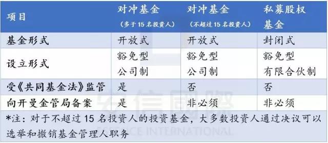 通常,在開曼設立的對沖基金(開放式基金)采用豁免型公司的形式設立,私募股權基金(封閉式基金)采用豁免型有限合伙制的形式設立。采用不同的組織形式以及涉及的投資人數量不同,會直接關系到設立的基金是否落入開曼群島的《共同基金法》的監(jiān)管范圍。
