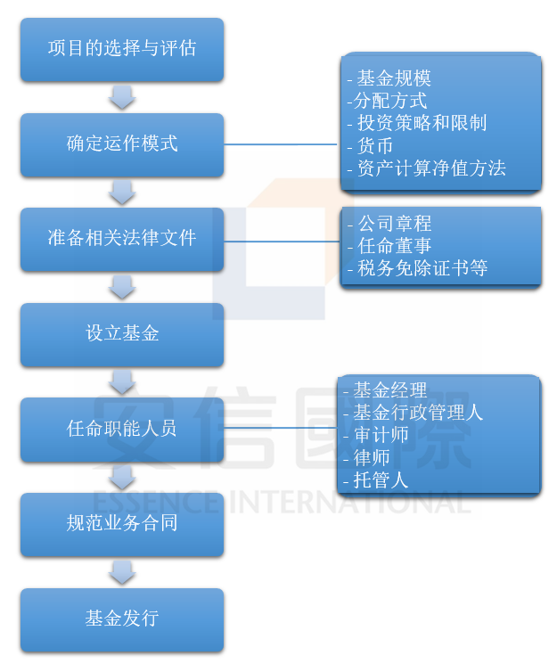 在開曼設立私募股權基金的基本流程主要分為以下步驟: