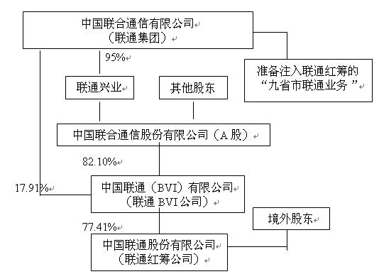 為了將九省市聯(lián)通業(yè)務(wù)順利注入聯(lián)通紅籌公司,聯(lián)通公司設(shè)計(jì)了如下的并購方案: