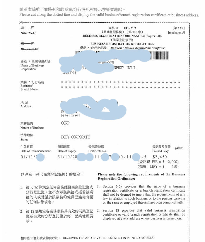 香港的企業(yè)營(yíng)業(yè)執(zhí)照是什么樣的?