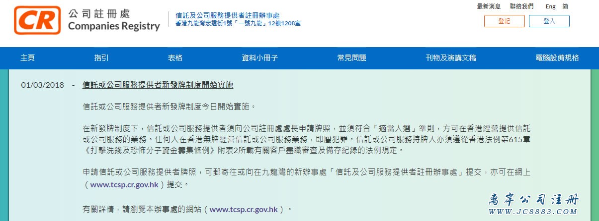 香港公司注冊(cè)處于2018年1月發(fā)布公告,信托及公司服務(wù)提供者新許可證制度根據(jù)《反洗錢及反恐融資條例》將于2018年3月1日生效。詳細(xì)公告內(nèi)容如下: