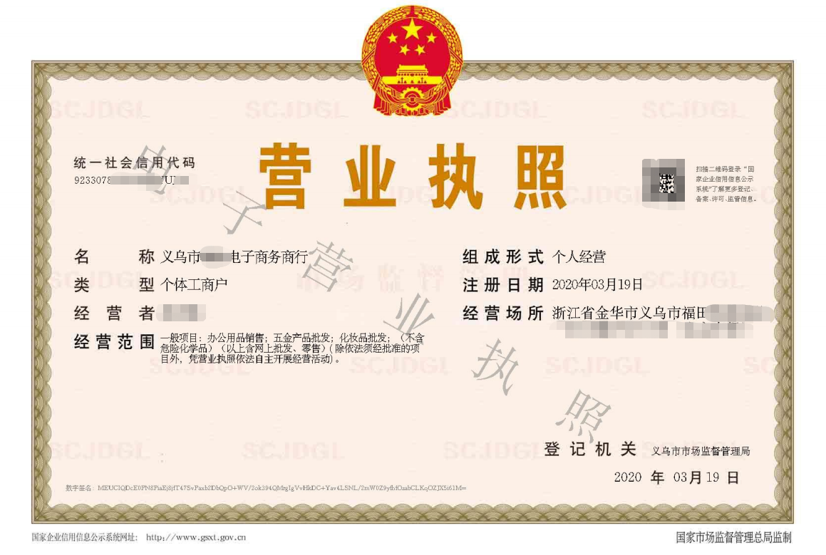2:個體戶名稱:義烏市XX電子商務(wù)商行(此名稱基本是工商隨機(jī))?