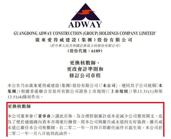 盡管兩家上市公司和自家審計師各有“齟齬”,但卻結局不同:愛德威建設集團選擇了和普華永道說“再見”,更換了新的核數(shù)師——「為合理控制審計成本并減少公司費用開支,也為了便于通過A股資本市場進行融資,經(jīng)公司與羅兵咸永道的友好協(xié)商,羅兵咸永道已辭任公司核數(shù)師。審核委員會推薦聘請立信會計師事務所(特殊普通合伙)為核數(shù)師?!?br />