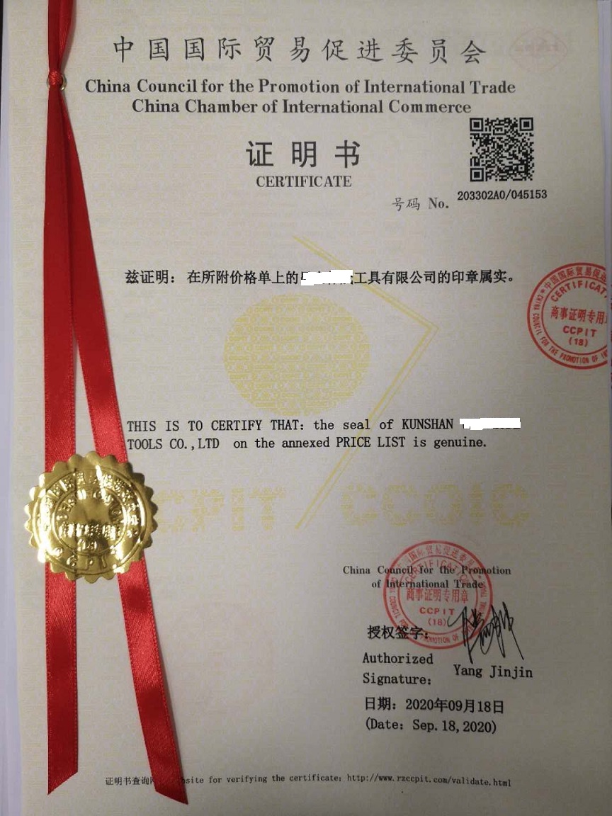 價(jià)格單CCPIT認(rèn)證:是由中國國際貿(mào)易促進(jìn)委員會(huì)(英文名稱:China Council for the Promotion of International Trade縮寫簡稱: CCPIT)也稱中國商會(huì)認(rèn)證,所出具的一種由證明詞黃頁,認(rèn)證文件價(jià)格單,與封面組成的一種外觀類似一本白皮書的證明性清關(guān)文件,可在出口貨物在國外海關(guān)清關(guān)時(shí)使用,經(jīng)過貿(mào)促會(huì)認(rèn)證之后,文件上面會(huì)加蓋一個(gè)貿(mào)促會(huì)的商會(huì)章,證明已對文件上所附的文件已進(jìn)行認(rèn)證!