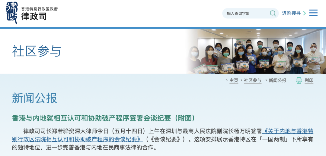 - 由香港律政司發(fā)布的《內地破產管理人向香港特區(qū)法院申請認可和協(xié)助的程序實用指南》(“《實用指南》”)