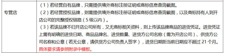 若該商標(biāo)非開(kāi)店公司自有,則需按照以下要求提報(bào)品牌(以下方式任選其一):