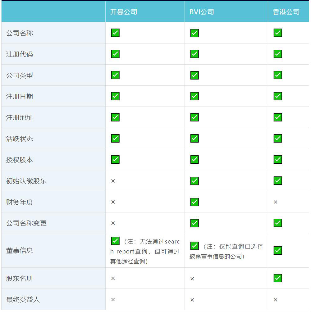 對于一般跨境投資者或公眾而言,通過公司注冊處等信息登記部門,有的信息可以查到,有的則不能。