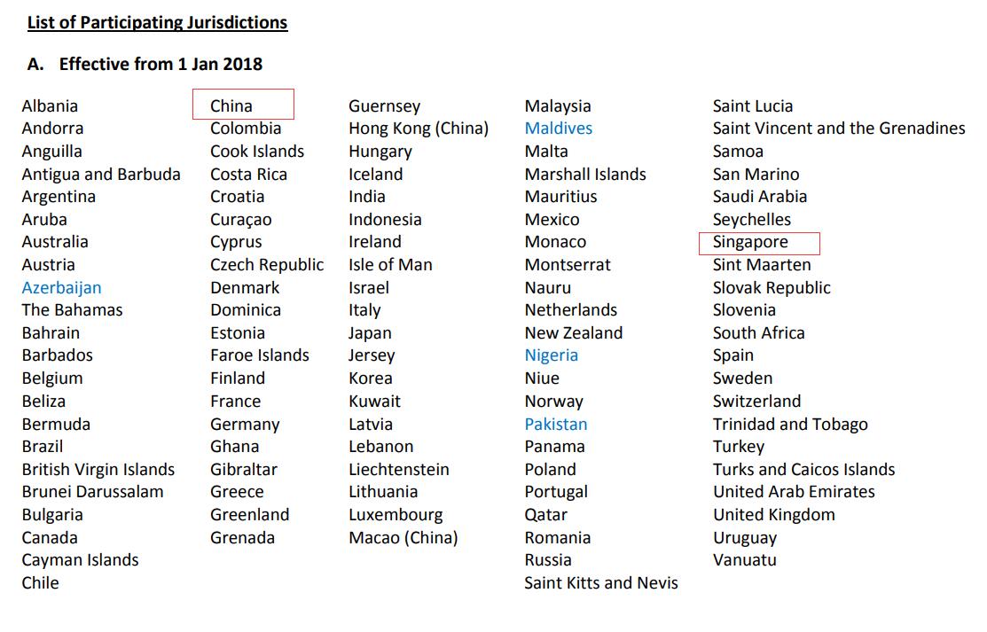 新加坡2018年9月開始與中國交換稅務(wù)居民金融機(jī)構(gòu)持有賬戶的信息。如果我們曾經(jīng)用中國護(hù)照在新加坡銀行開戶且賬戶余額超過等值600萬人民幣,那么截至2017年年底的賬戶余額及賬戶收入都會在今年9月被自動報送給中國的稅務(wù)機(jī)構(gòu)。如果賬戶余額在600萬人民幣以下,賬戶信息將于2019年交換回中國。